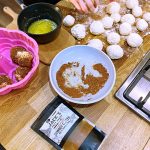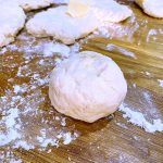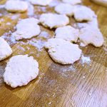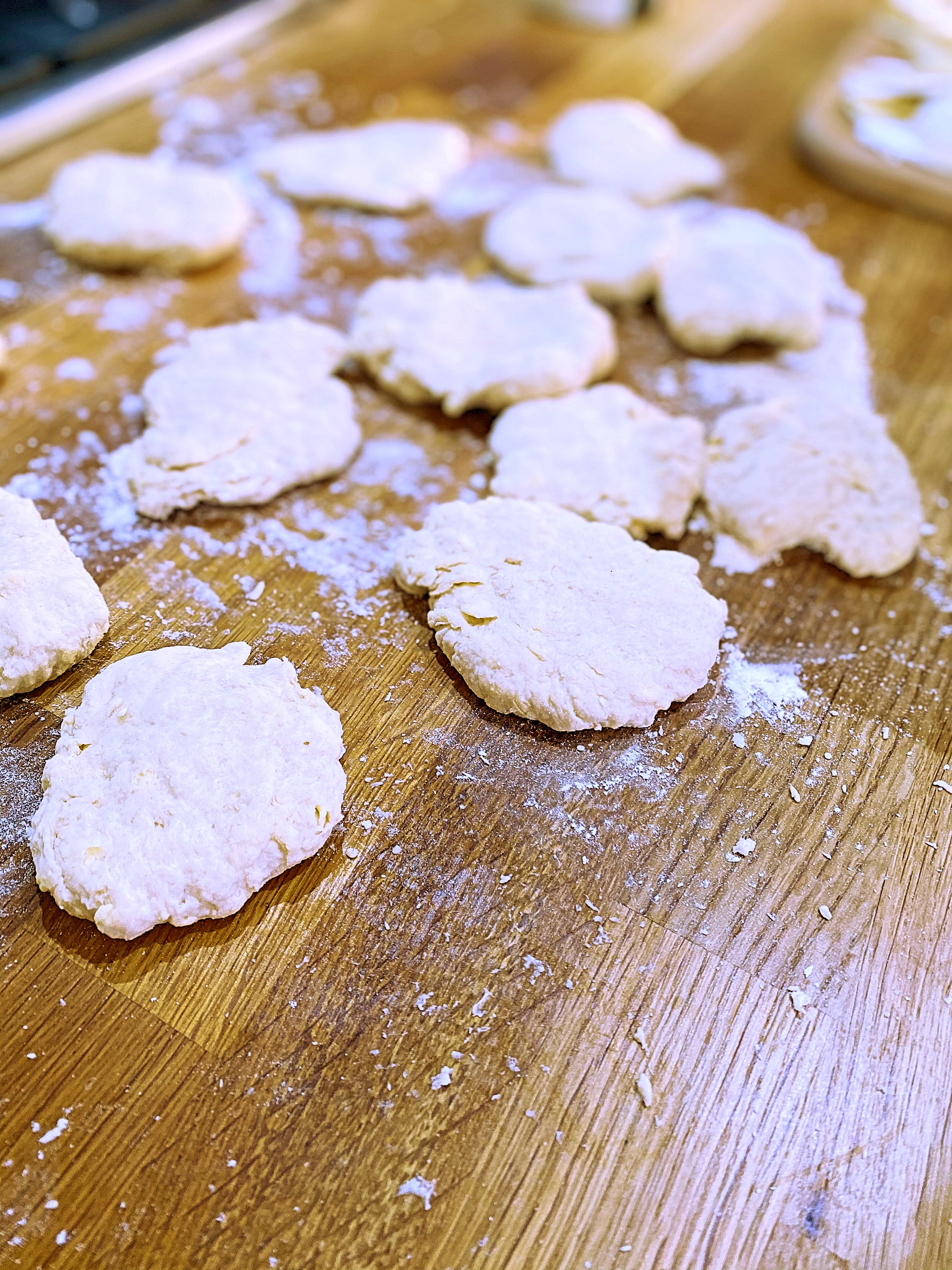roughly tear bits of the dough off and flatten into rough rounds. Do not worry if they are odd sizes, this just adds to the look of the completed monkey bread.