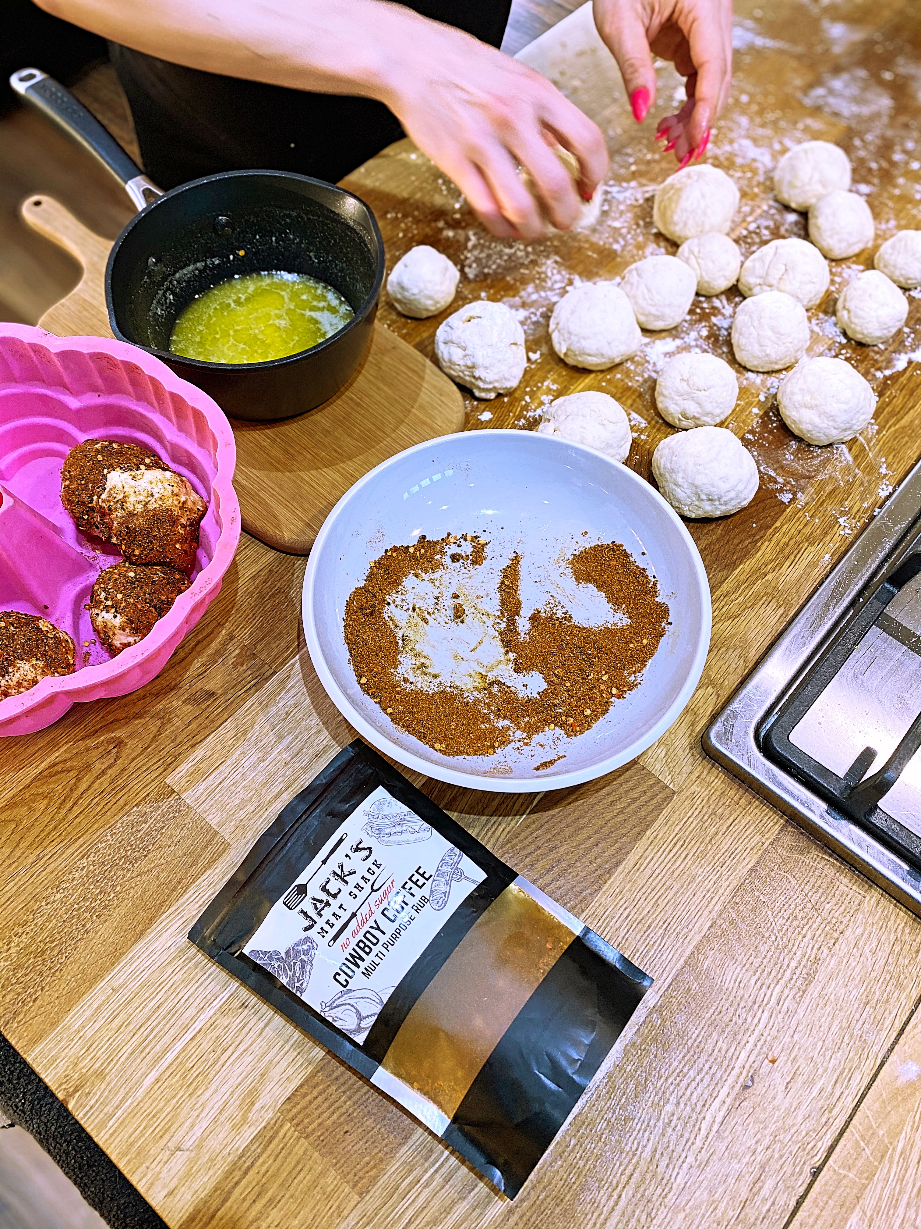 The "bread" is in fact a beautifully flaky biscuit dough, coated in generous lashings of butter and as an extra special treat, oozy, gooey brie as you bite into it. And best of all? My very own COWBOY COFFEE multi purpose rub creating a salty and crunchy exterior. What you waiting for? saddle up Cowboys and get baking!