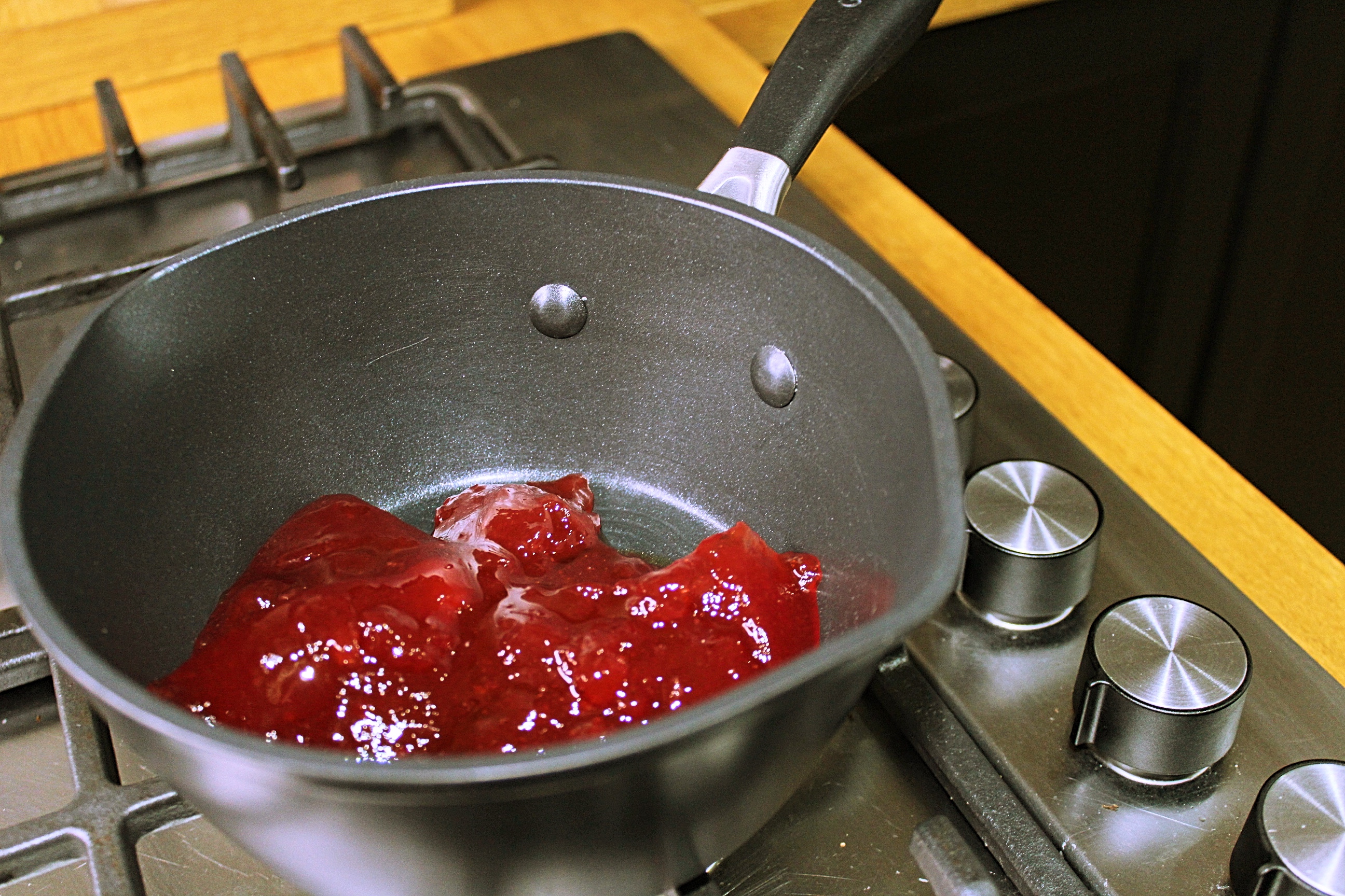 Heat the jam and vanilla in a saucepan to break it down into a smooth warm mixture.