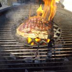 Personally I think this method works better for fattier cuts like Ribeye and T-bone however it is possible to use a leaner cut of meat – just use a high temperature oil brushed on the outside such as peanut or seed oil.