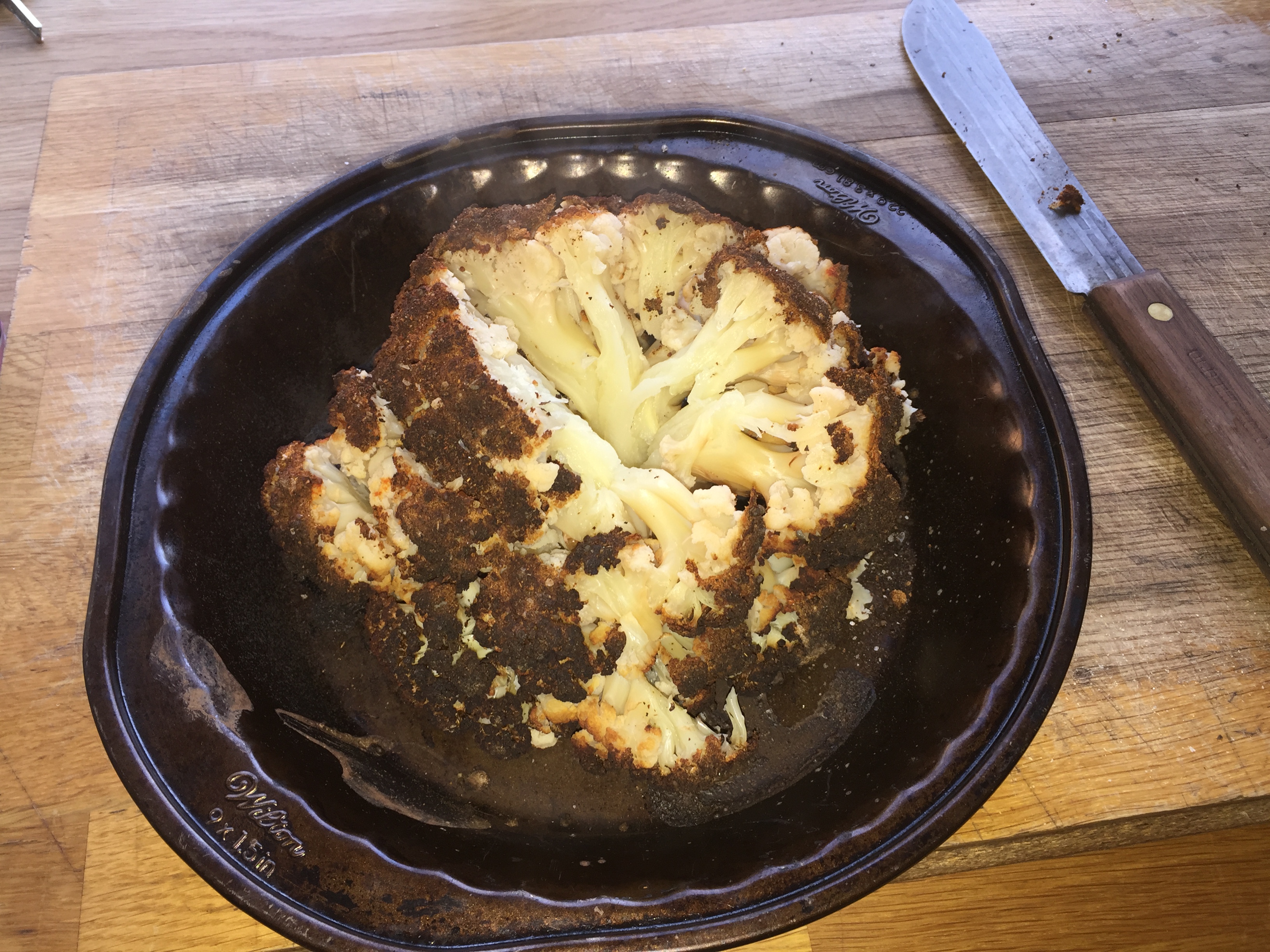 The cauliflower should be soft on the inside, crunchy on the outside and falling apart.